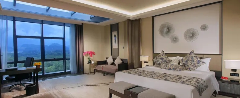 肇庆星酒店位于肇庆市繁华的中心地带,毗邻岭南第一奇观——七星岩景区,面朝景区核心风光。酒店以超炫的帆船造型,与星湖的湖光山色完美融合,同时坐拥270度湖岸景观视野,享有优越的地理位置和星湖壮丽美景。酒店以时尚奢华的设计、高端的硬件配置,倾力打造舒适与时尚的匠心组合,为来宾提供舒适的体验。